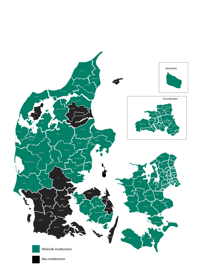 Nedenunder kortet kan du læse mere om, hvem der er medlem af Affald.dk.